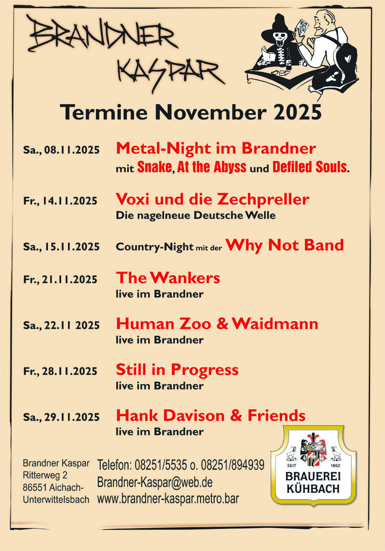 Am 08.11.2025 gibt es wieder den härtesten Abend des Jahres im Brandner. Dabei sind diesmal Snake und At the Abyss aus Ingolstadt und natürlich Defiled Souls.